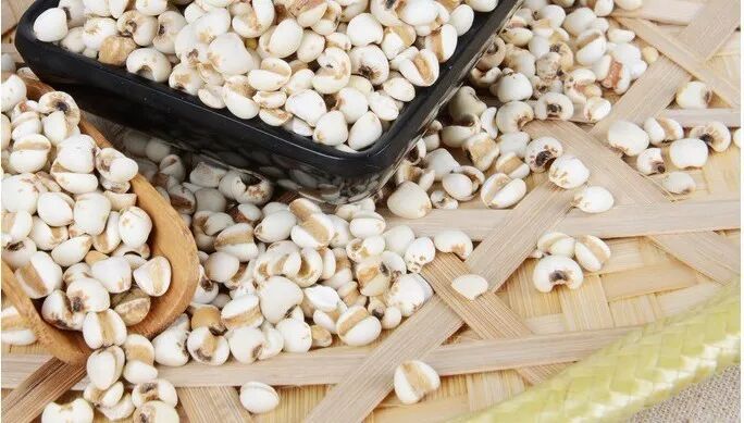 薏苡仁30克、淀粉少许、砂糖、桂花适量。先煮薏苡仁,米烂熟后放入淀粉少许,再加砂糖、桂花。作早餐用,能清利湿热、健脾除痹。